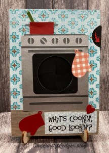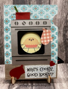 I had been wanting to try this technique ever since seeing it on some card sites, but all of them used a physical die for the various parts used. Not only are the dies expensive, but I don’t like getting a physical die when I have my Cricut to use. Then I discovered the Lori Whitlock site and they had a lot of these cards as svg files. This one is the 5 x 7 Iris Shutter Card Oven and can be found here. It was pretty easy to put together following her video. I changed the front up a little and now that I have the basic elements, I can make more with different fronts. The patterned cardstock was from a DCWV stack called Nana’s Kitchen. I did flatten the center image so that it was a print and cut, but you could easily swap out for a sentiment too. The front sentiment is from a Club Scrap set called 50’s Kitchen.
